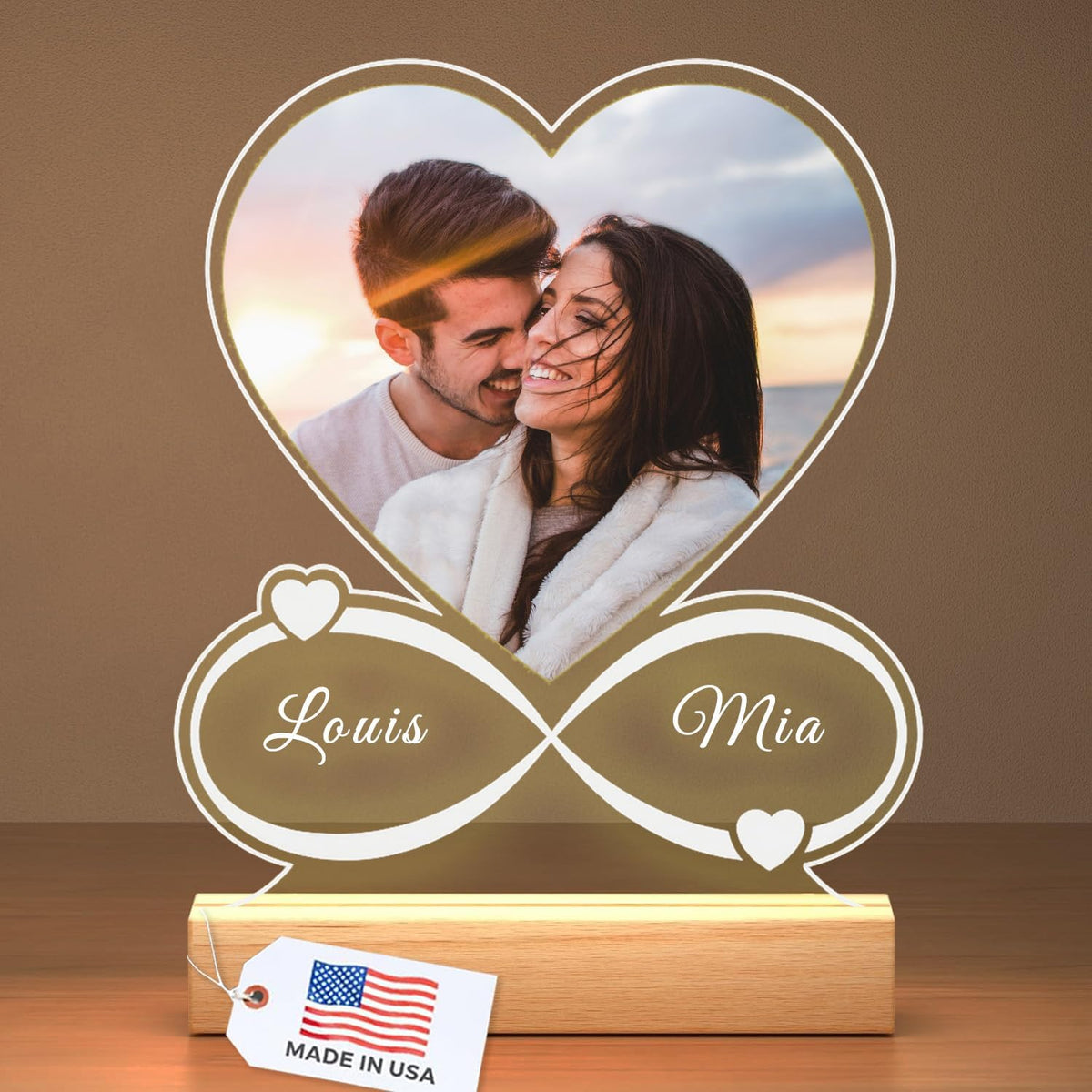 Answer 1: You can customize the frame by uploading your own photos and adding personalized engravings such as names, dates, or heartfelt messages. Additionally, choose from various design options including different styles and colors to match your decor.